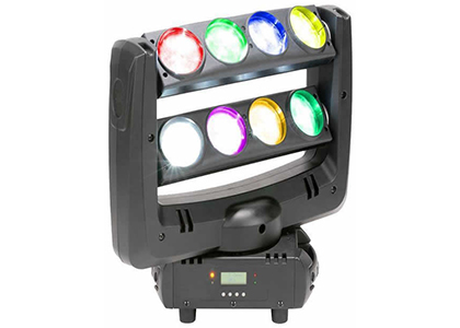 LED雙排搖頭蜘蛛燈 電 壓: AC100-240V, 50-60HZ 消耗功率: 100W 光 源: 8顆10W紅綠藍白四合一科銳燈珠