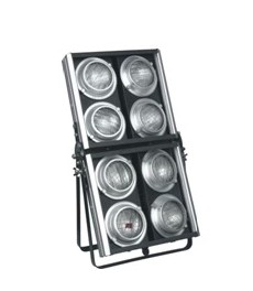 八眼燈采用燈陣組合設計,重量輕,體積小,造型美觀大方,光照面積大,光場均勻,作為大面積泛光照明被廣泛應用于歌舞廳、室外露天舞臺、電視演播廳和大型演唱會等場所場合。